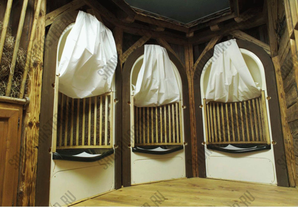 В парной краксен каждое сиденье располагается в отдельной нише, что способствует уединению и расслаблению, как при СПА процедуре. В каждой нише устанавливается сиденье с водяным или электрическим подогревом. Спинка у сиденья решетчатая, а все пространство между стеной и решеткой заполняется сеном. Толщина такой «сенной подуш-ки» 30–40 сантиметров. Посетитель садится в нишу, закрывает специ-альную шторку из натуральных тканей и начинается «магия». На стене за сиденьем расположена паровая форсунка, и пар проходя через ароматное сено, насыщается эфирными маслами трав и окутывает волшебством и мягко согревает сидящего в нише человека.