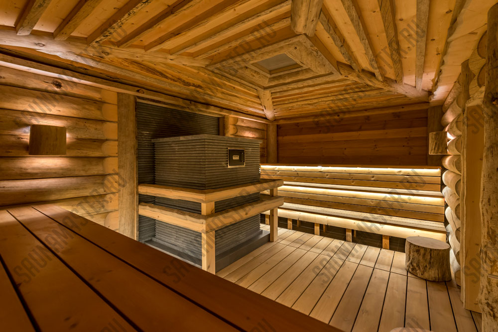 В традиционно русской бане поддерживается высокая температура и влажный пар. Это место тесно связано с историей и традициями русского народа. Баня для русского народа, это своеобразный ритуал, который подразумевает длительные посиделки, парение веником. Любовь к бане у русского народа уходит корнями в далекое прошлое, и тесно связано с историей и традициями. Для обогрева помещения испокон веков используется дровяная печь, а пар создается подачей воды на раскаленные камни. В современной интерпретации возможно использование газовых, дровяных и электрических каменок, в зависимости от пожеланий заказчика и возможностей места эксплуатации. Целебный жар от нагретых камней, ароматный пар, контраст температур, массаж горячим веником, эфирные масла березовых/дубовых листьев, водные процедуры – все это объединяет русская баня!